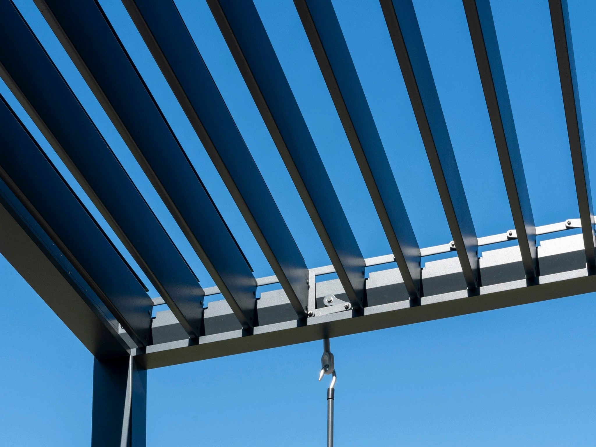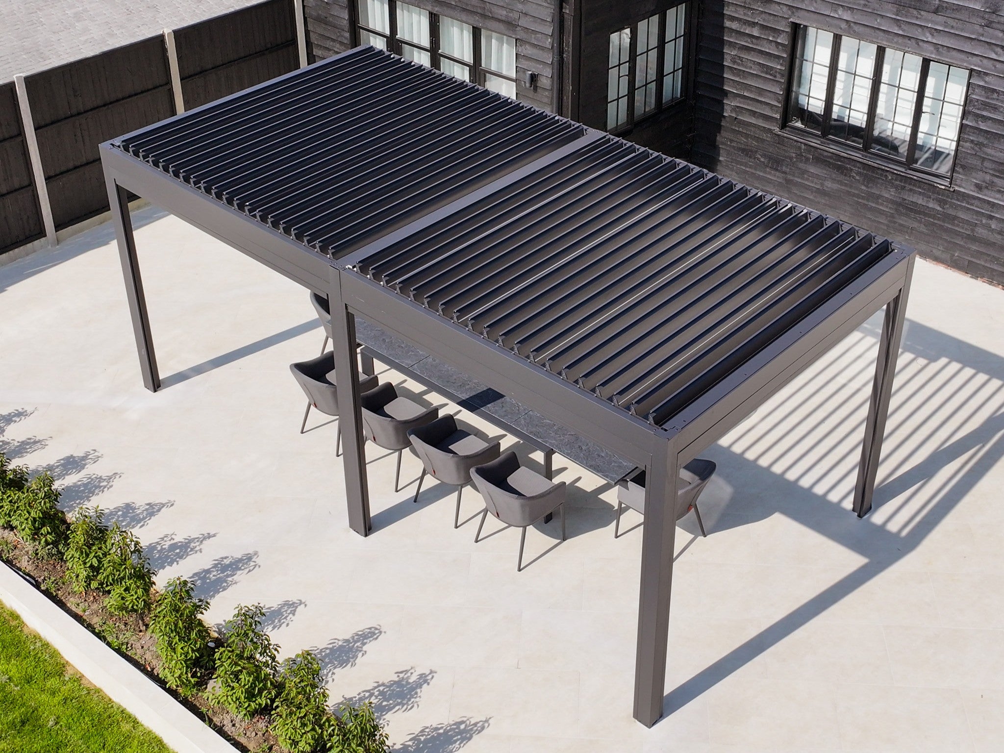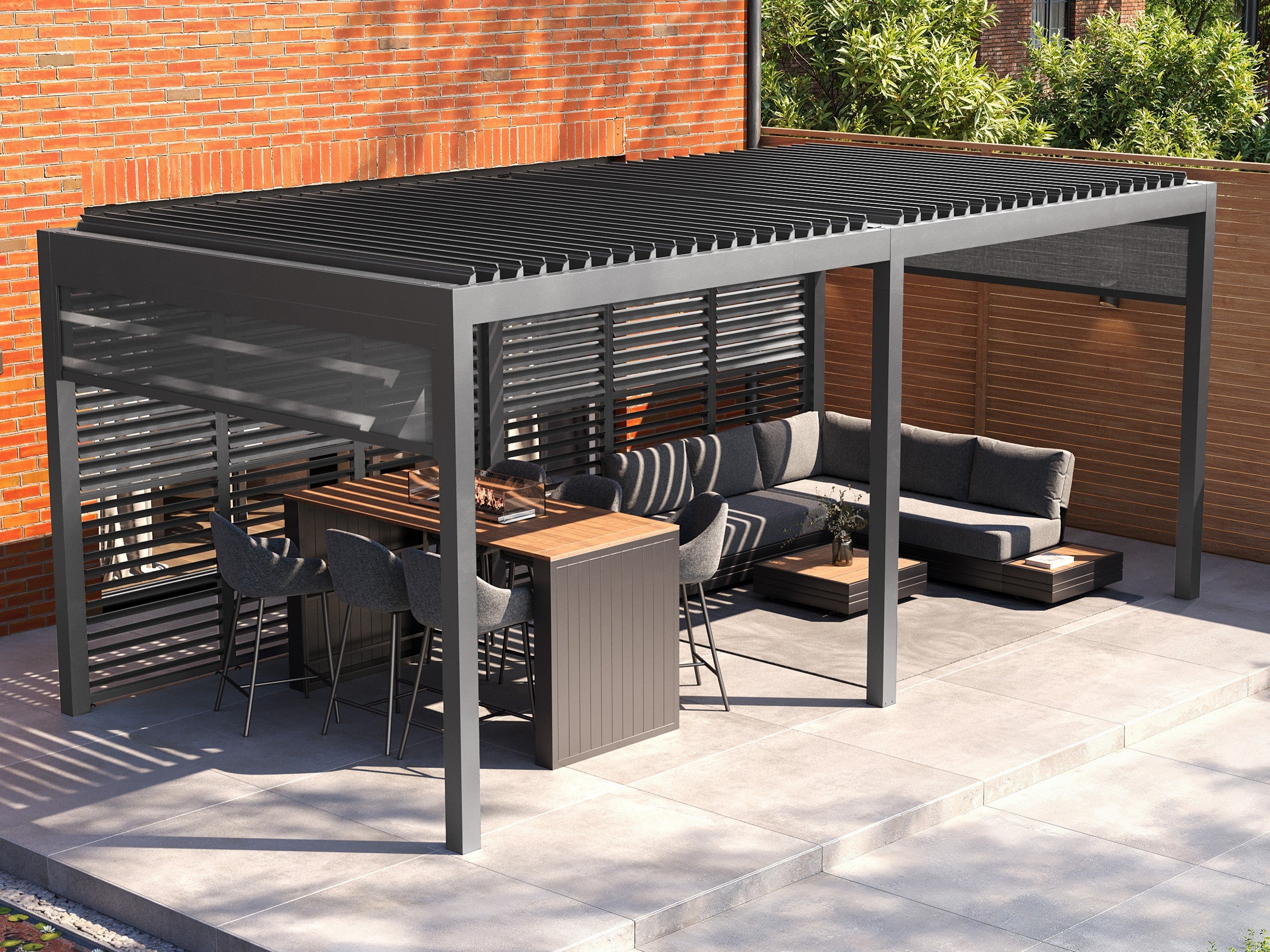 PergoSTET Deluxe 3m x 4m Rectangular Pergola with Motorised LED Louvres and 3 Manual Side Blinds in Grey – £5,150.00