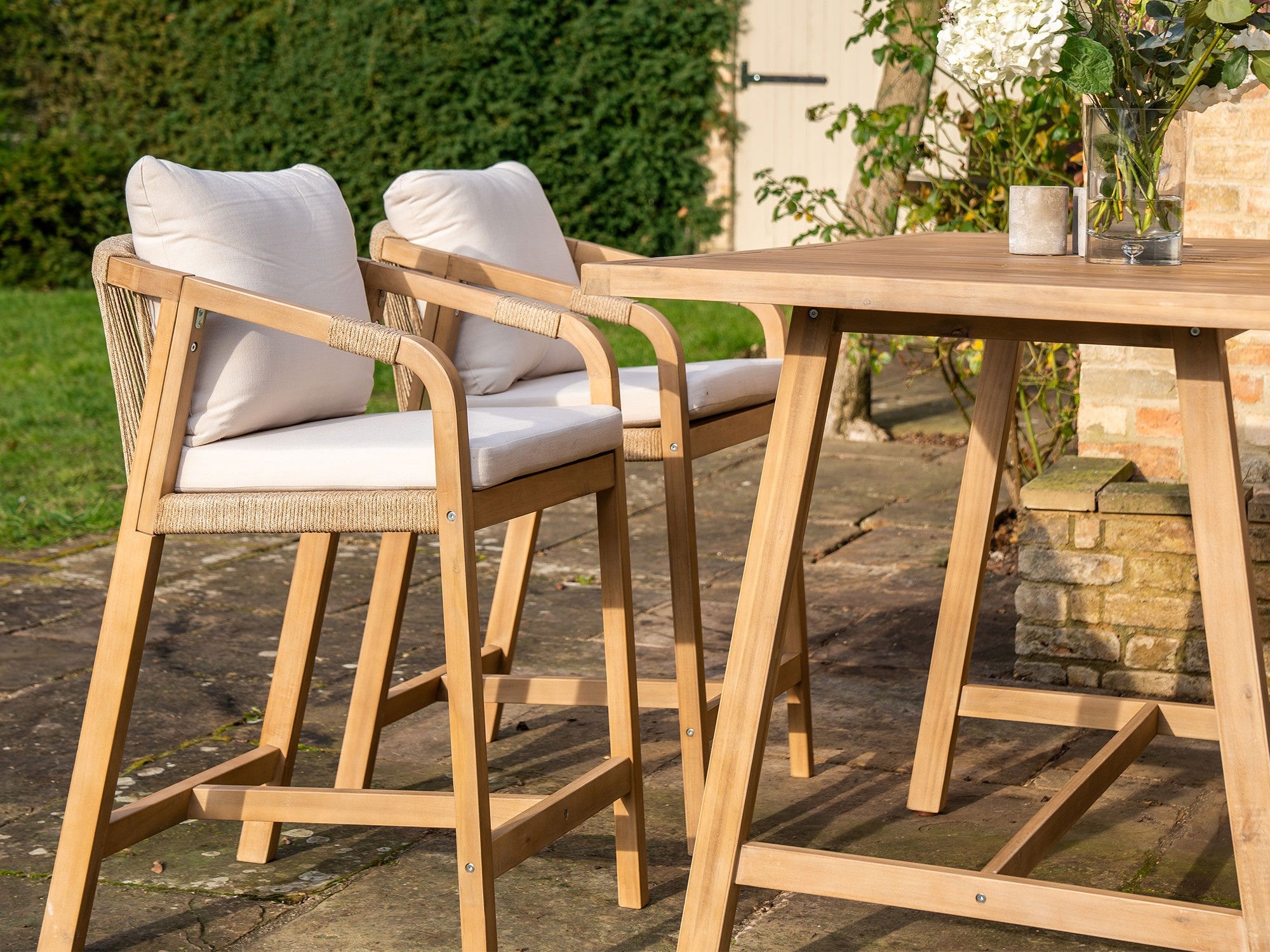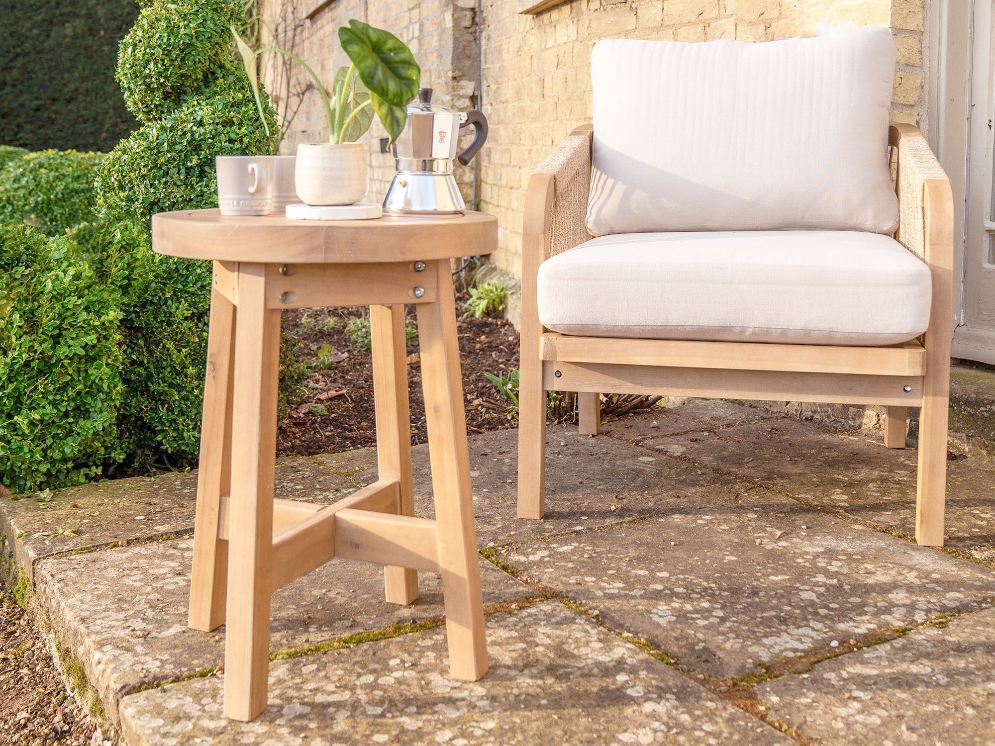 Use weatherproof materials: Choose garden furniture made from aluminium, teak or outdoor fabric that resists rain and fading. Weather-resistant cushions can be left out longer and still look their best.