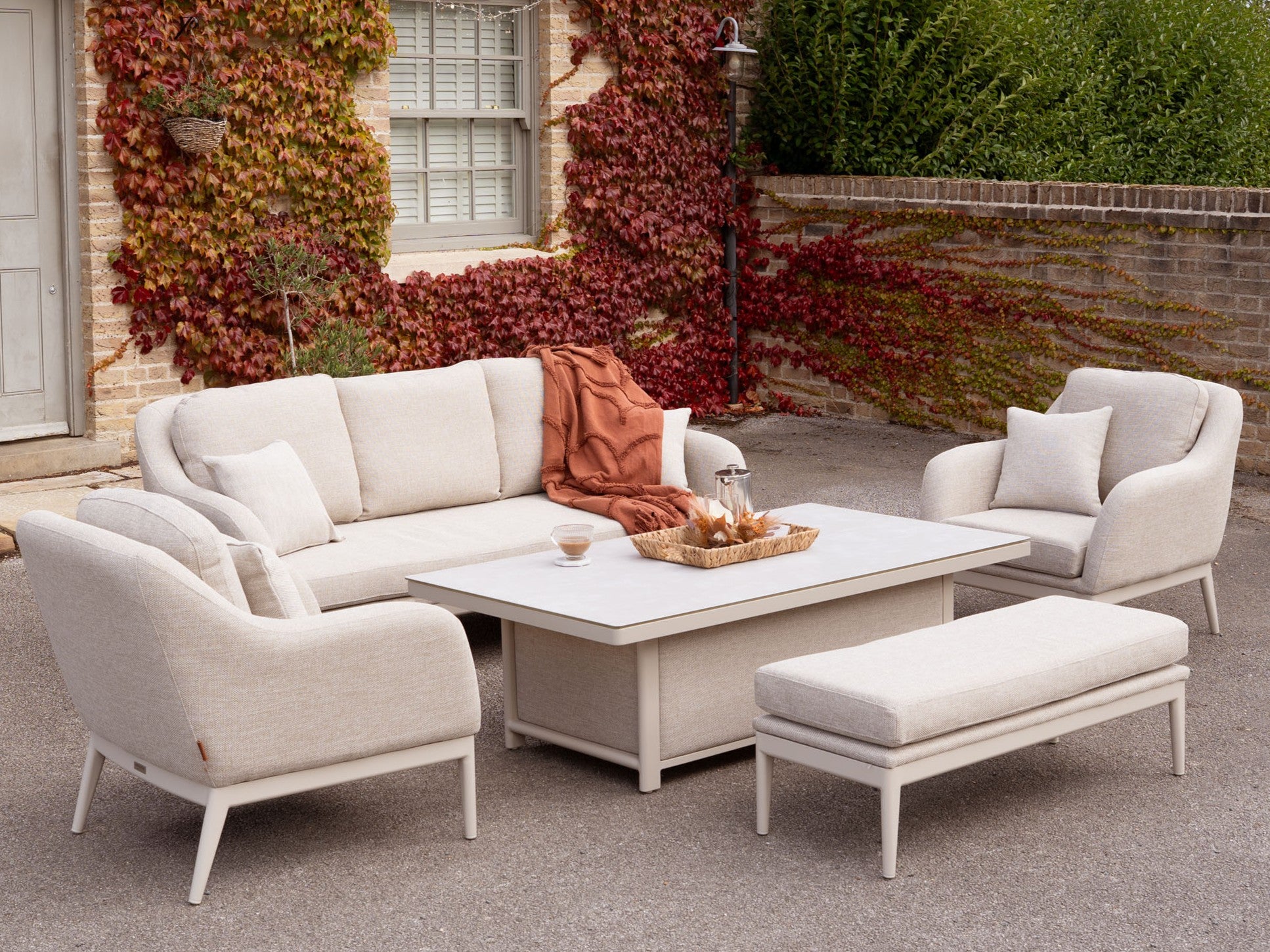 Luna 3 Seat Outdoor Fabric Sofa Set with Rising Table in Fawn – £3,649.00