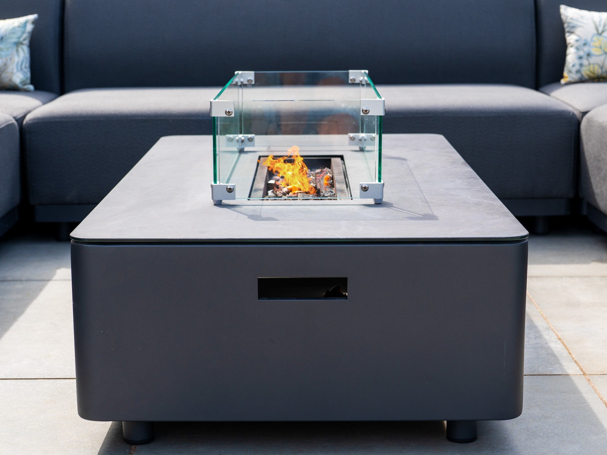 Luna Outdoor Fabric Corner Sofa Set with Firepit Coffee Table in Grey- £3,749.00