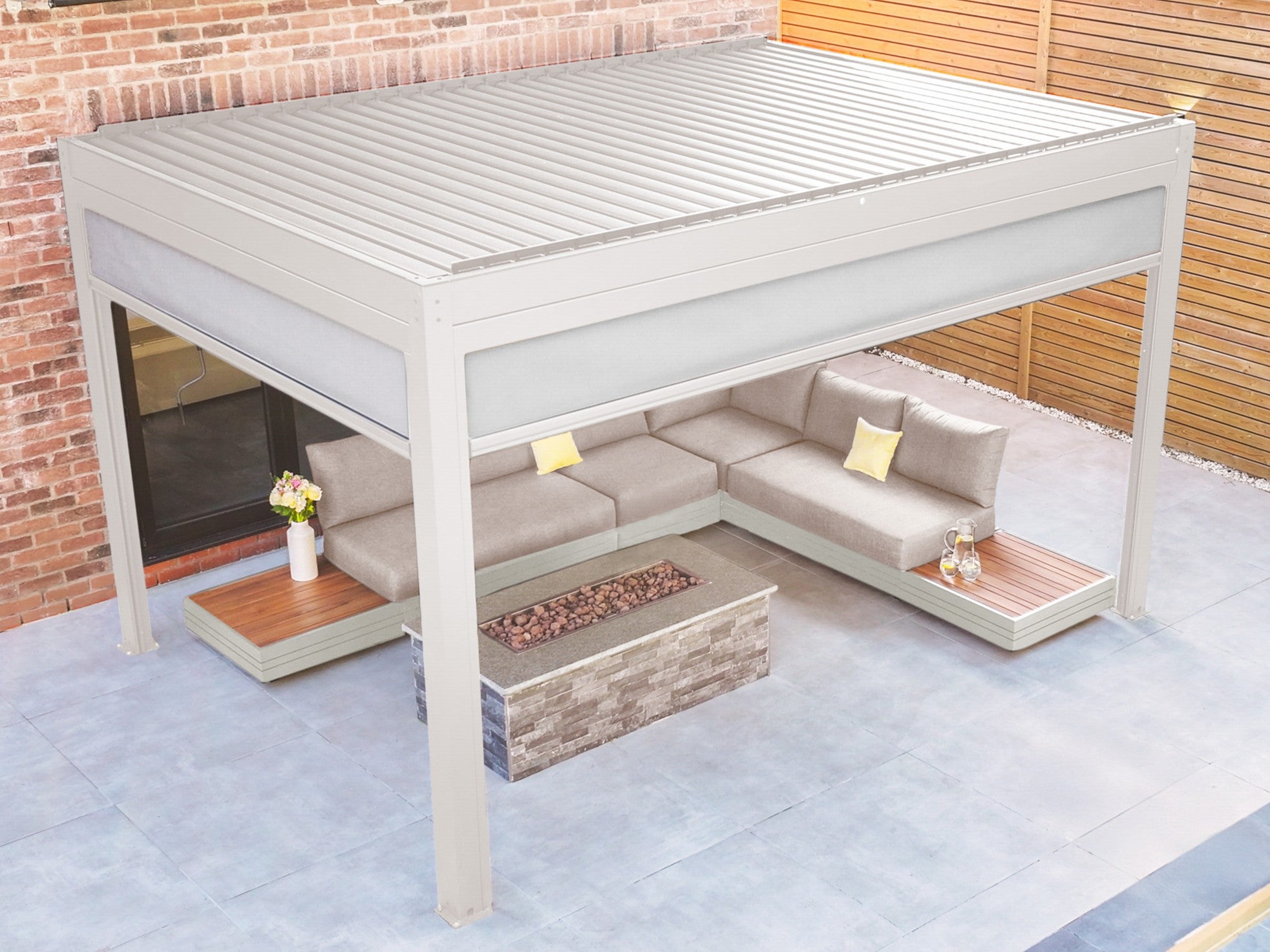 A well-designed pergola doesn’t have to be limited to summer. With a few thoughtful additions, your seating area can stay warm, comfortable and inviting through every season.
