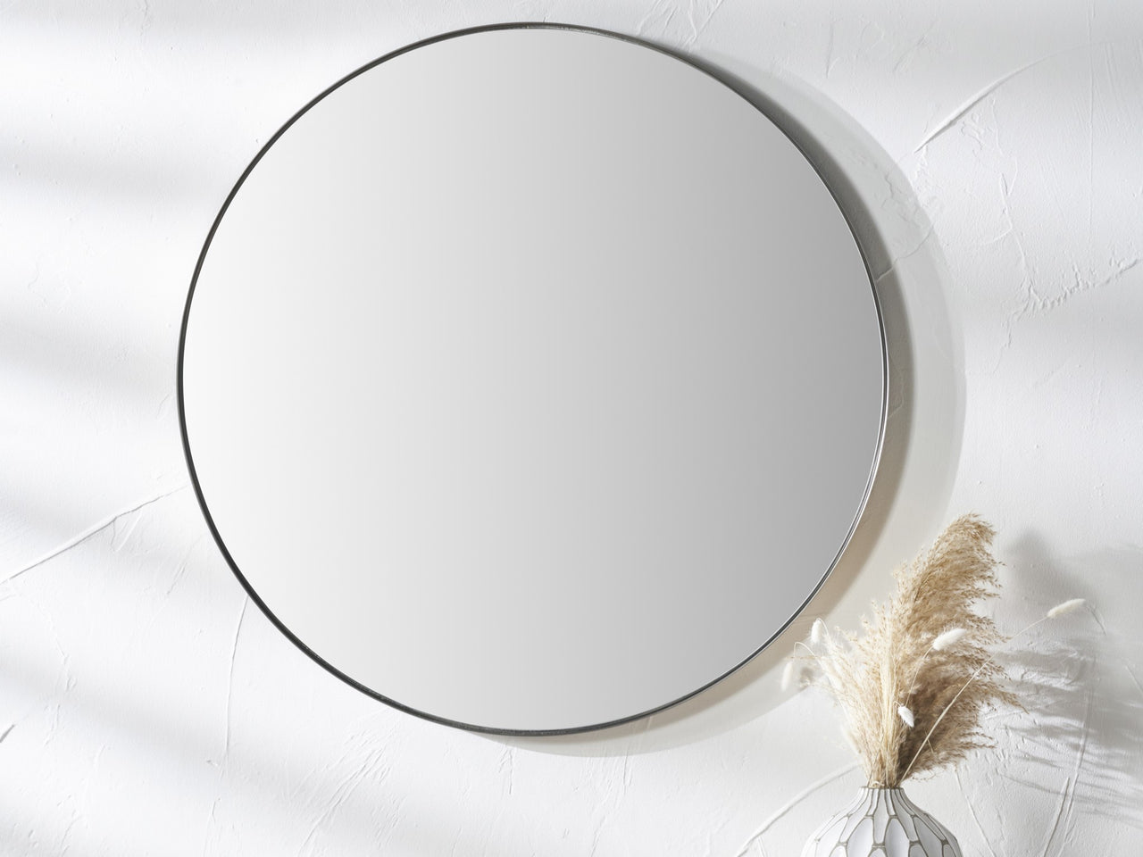 Brushed Silver Metal Slim Frame Round Wall Mirror Large – £199.99
