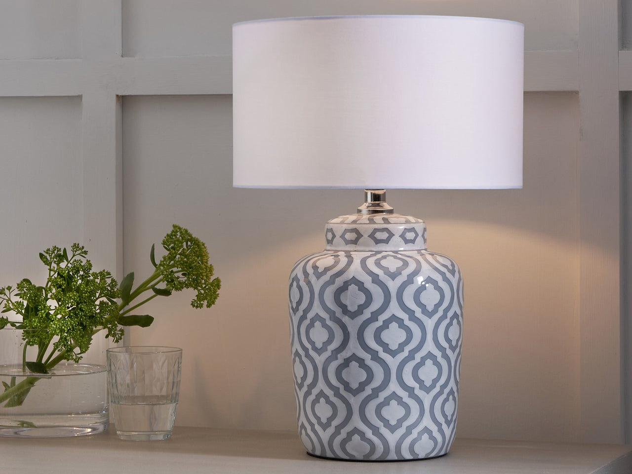 Celia Grey and White Pattern Ceramic Table Lamp