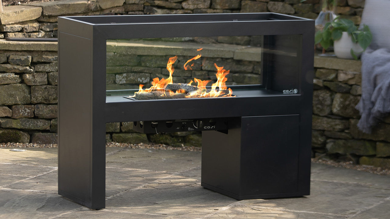 - Table fire pits: Great for compact spaces, table fire pits provide extra space, doubling up as tables for meals, drinks and snacks—perfect for cosy evening gatherings with your partner or friends.