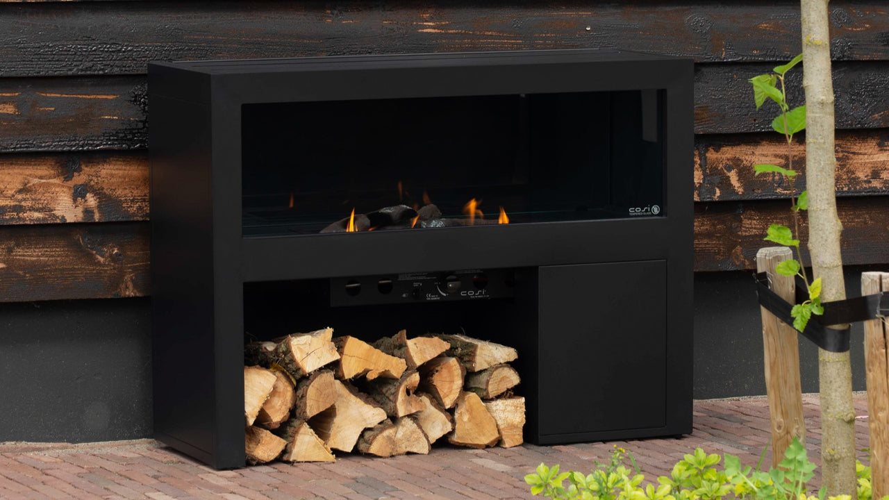 If you’re on the hunt for a wooden fire pit, look for one with built-in storage for wooden logs to create an authentic, rustic look. Not only will it pair great with wooden furniture and natural foliage, but it will also ensure you’ll have a supply of dry wood on hand to keep the fire crackling.