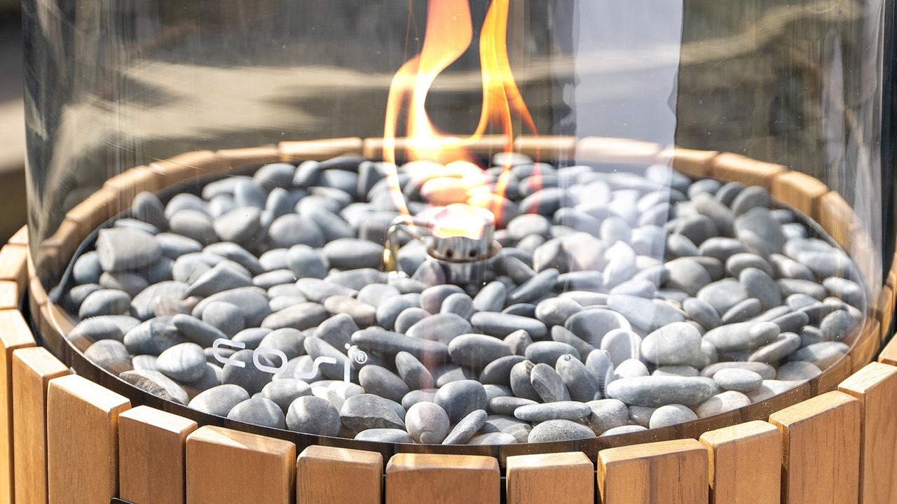 These tall and elegant structures resemble lanterns or columns and come in various design choices, from rustic to modern. The flames dance within the enclosed glass structure at the top, providing warmth and casting a gorgeous glow perfect for intimate gatherings or quiet evenings.