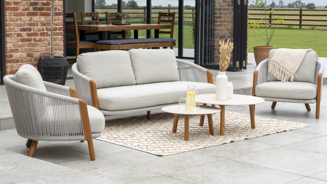 Looking for luxurious outdoor dining ideas to take your garden setup to the next level? Let us introduce fire pit dining sets. With an easy-to-use fire pit built right into the ceramic table, these tables pair nicely with ultra-comfortable weatherproof rope chairs.