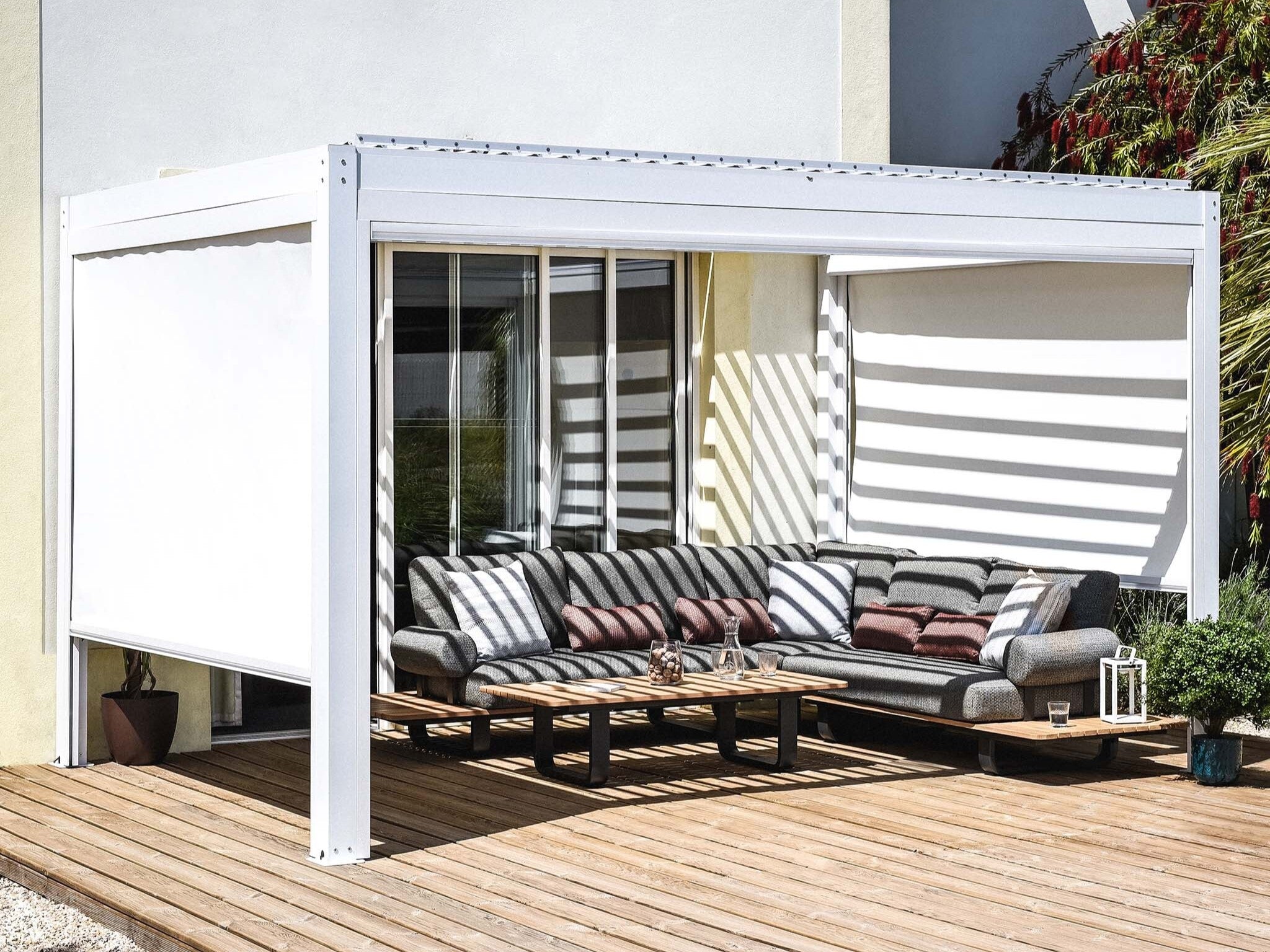 PergoSTET Plus 3m x 3m Square Pergola with 3 Drop Sides and LED Lighting in White – £3,599