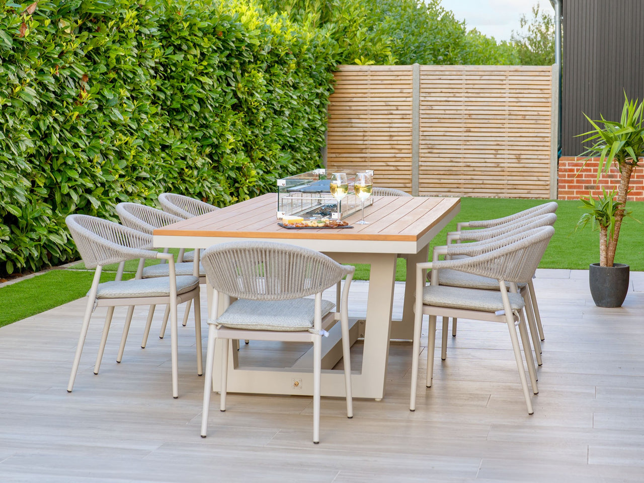 Cloverly 8 Seat Rectangular Teak Firepit Dining Set in Latte £3,399.00
